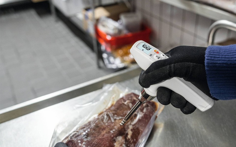 帶有冷凍食品測量頭的手持式溫度計可幫助您準確測量冷凍食品的中心溫度。
