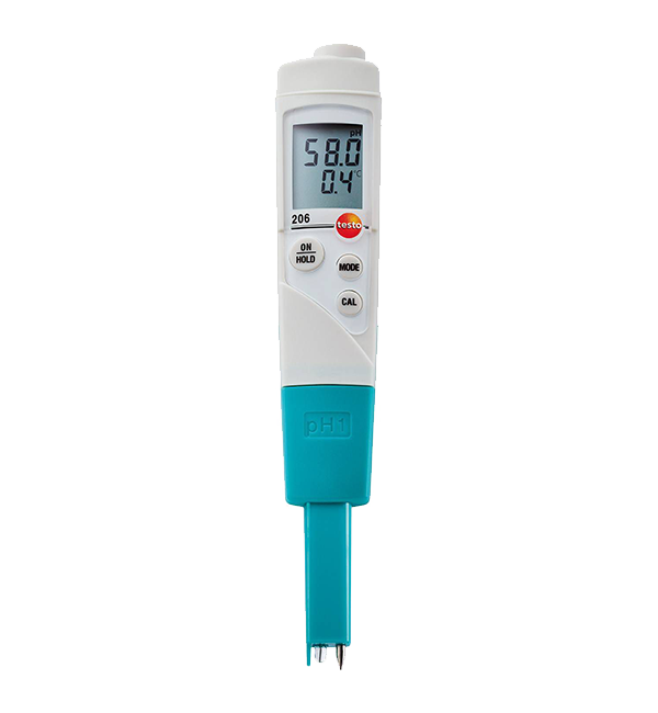 - testo 206-pH1適于液體中酸堿度pH值測量(甚至是粘塑性介質)。集成溫度傳感器保證溫度補償,確保pH酸堿度準確測量
